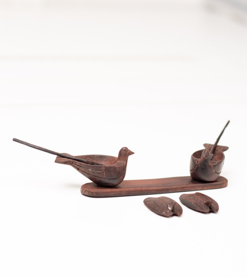 Saler y pimentero en forma de pájaros, madera exótica