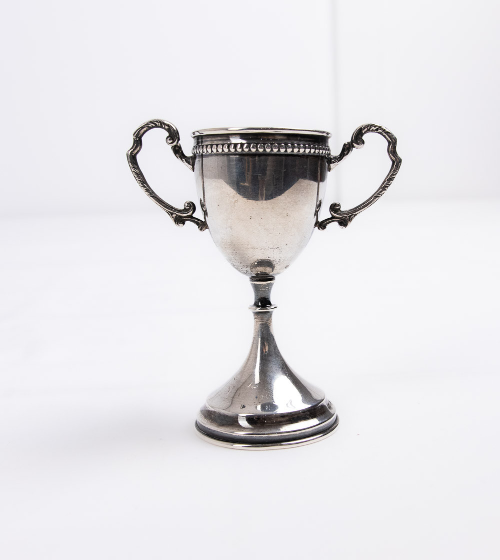 Este pequeño trofeo de plata en forma de copa es un objeto decorativo que encarna elegancia y prestigio. Su forma refinada con un diseño delicado y contornos redondeados lo convierte en una excelente elección como objeto decorativo. Fabricado en plata de alta calidad, este cuenco brilla con un brillo seductor y encaja perfectamente en cualquier decoración. Ya sea en un estante, escritorio o mesa, agrega un toque de sofisticación y, al mismo tiempo, es un símbolo de reconocimiento y logro.